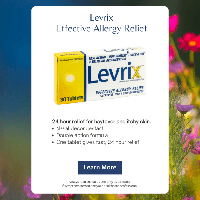 The active ingredient in Levrix is called Levocetirizine. It works fast to block Histamine receptors directly at the site where they are needed, giving you targeted strong relief from allergy symptoms for 24 hours.