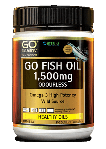 GO Fish Oil is molecularly distilled and mercury tested to ensure purity and quality. GO FISH OIL 1,500mg is a premium high potency Fish Oil sourced from deep sea wild fish.